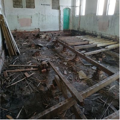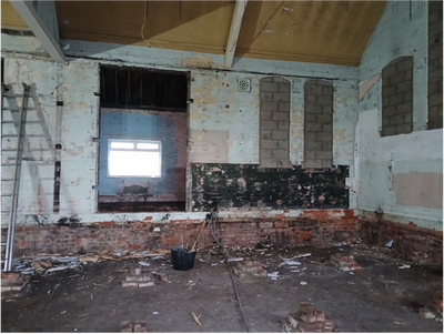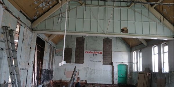 Work began and the dojo was stripped bare. The old heating system ripped out from behind the wall mats and some windows were bricked up ready for a future development.