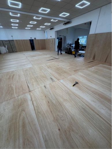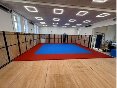 The team from ULTIMAT took over for a while to fit the boards over the old mat to give a semi-sprung floor effect. A new competition mat and bespoke wall cladding was soon to be fitted. Our local company who supplies all our kits and mats did a fantastic job form start to a fantastic finish.
