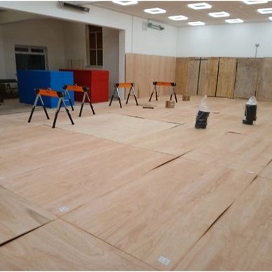 The main mats were taken up and stored in the lounge and will become the foundation for the new mat to be laid on over the new boarding.