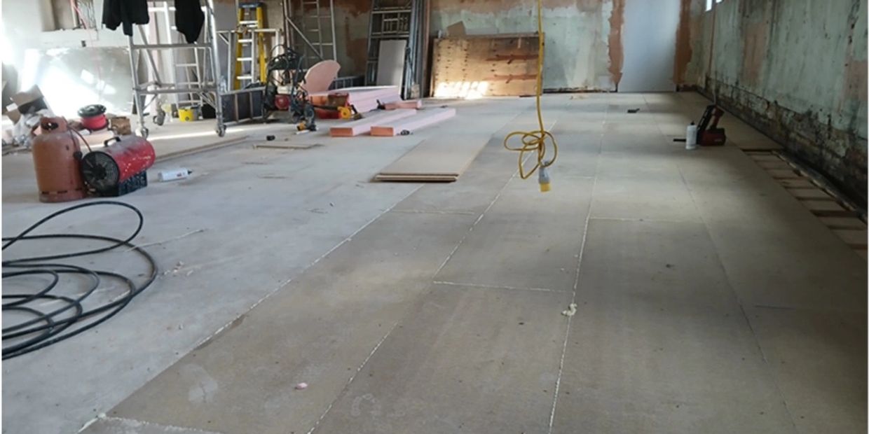 All the floor and joists now firmly in place on top of a new foundation wall and underfloor insulation. Plastering complete ready for the new false ceiling to go in. The ceiling space has been exposed and would have been nice to keep some of the height.