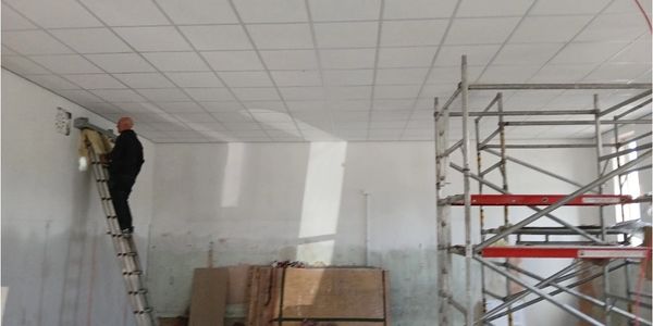 The cost of heating could not justify keeping it this way. The new ceiling is in, plaster painted and the heating system is now being fitted.